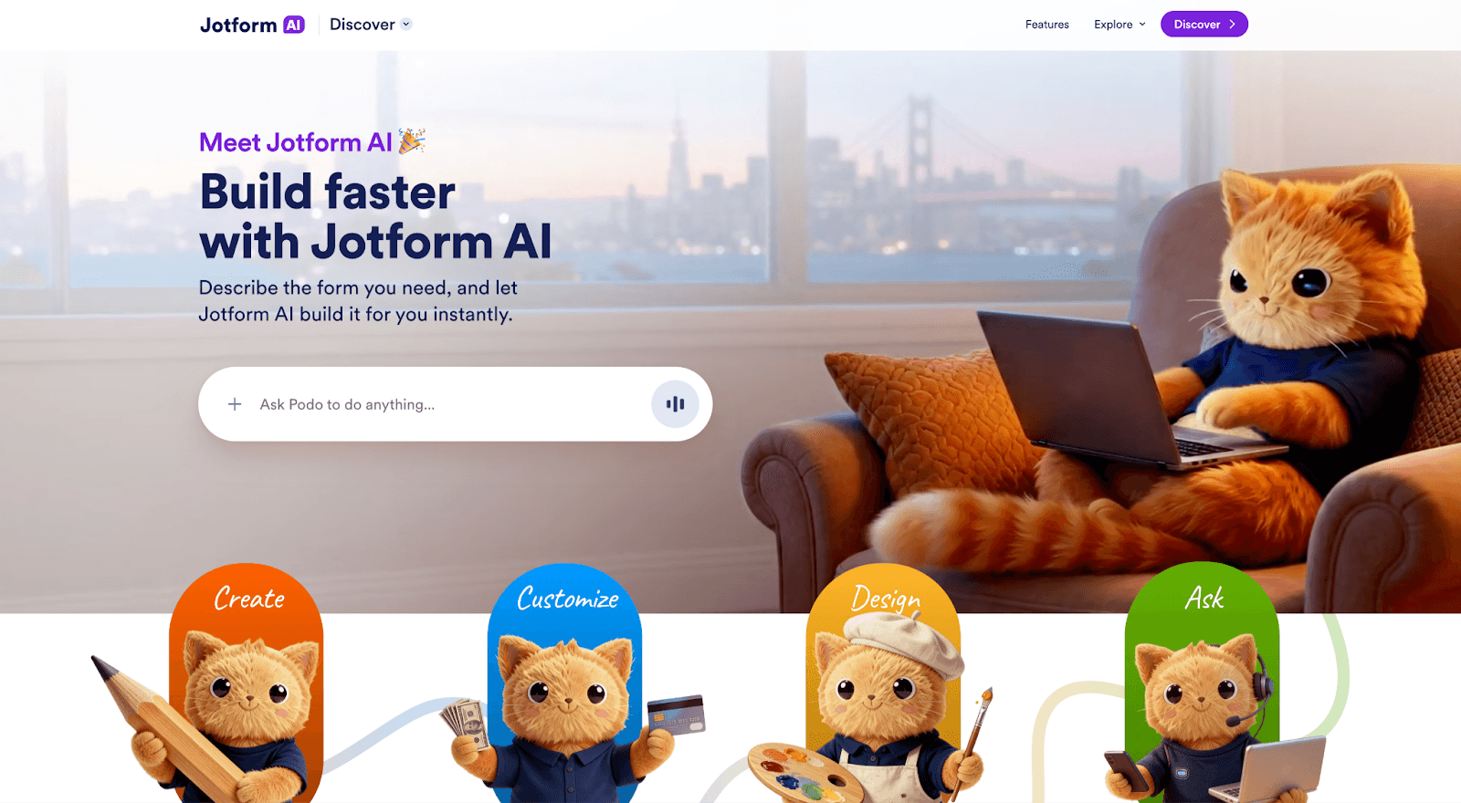 Jotform AI is an AI-powered form builder that allows users to generate forms from a simple text prompt or just by voice. Instead of manually creating fields and structure, users describe the form they need by typing or talking, and the platform automatically generates a ready-to-use form with relevant inputs. The form creation process is designed to be conversational. Users can refine, edit, and customize their forms through an AI chatbot inside the Form Builder, which makes iteration faster without rebuilding the form from scratch.