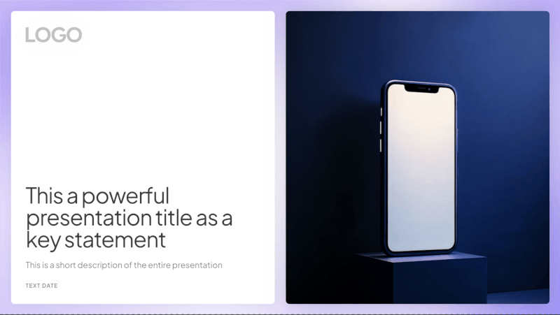 A title slide like the one below keeps the text on the left with plenty of open space around it, while the visual sits on the right. Neither side feels crowded, and the whitespace gives the headline room to land.
