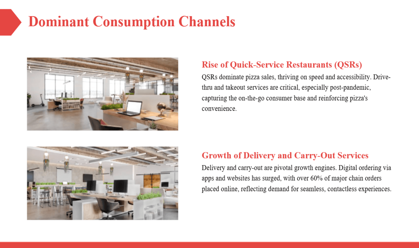 Images are not contextually relevant. When NoteGPT adds stock images to slides, they have no visible connection to the slide's content. I generated a test deck on pizza consumption in the US and most slides contained images that had nothing to do with the topic (example given below). This is a credibility problem: a presentation where the images ignore the content looks like the presenter did not review their own deck.