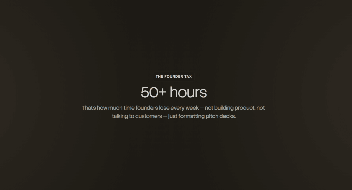 Script: "Last Tuesday at 11pm, a founder I was prepping with was still rebuilding slide two of her investor deck. The meeting was at 9am. It was 30 minutes long. And she'd already invested eight hours on the deck. That's the problem I want to talk about."