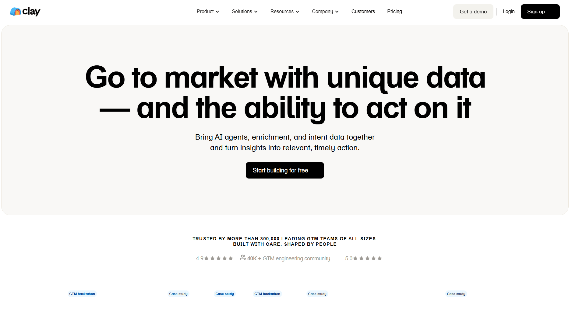 Clay helps go-to-market teams access unique data from 100+ sources and AI agents, enabling them to automate growth workflows with unprecedented personalization.