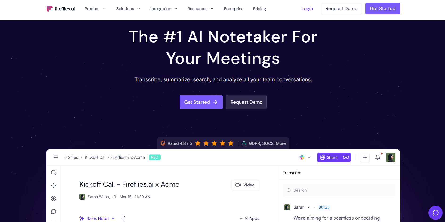 Fireflies transcribes, summarizes, and analyzes every meeting so nothing falls through the cracks.