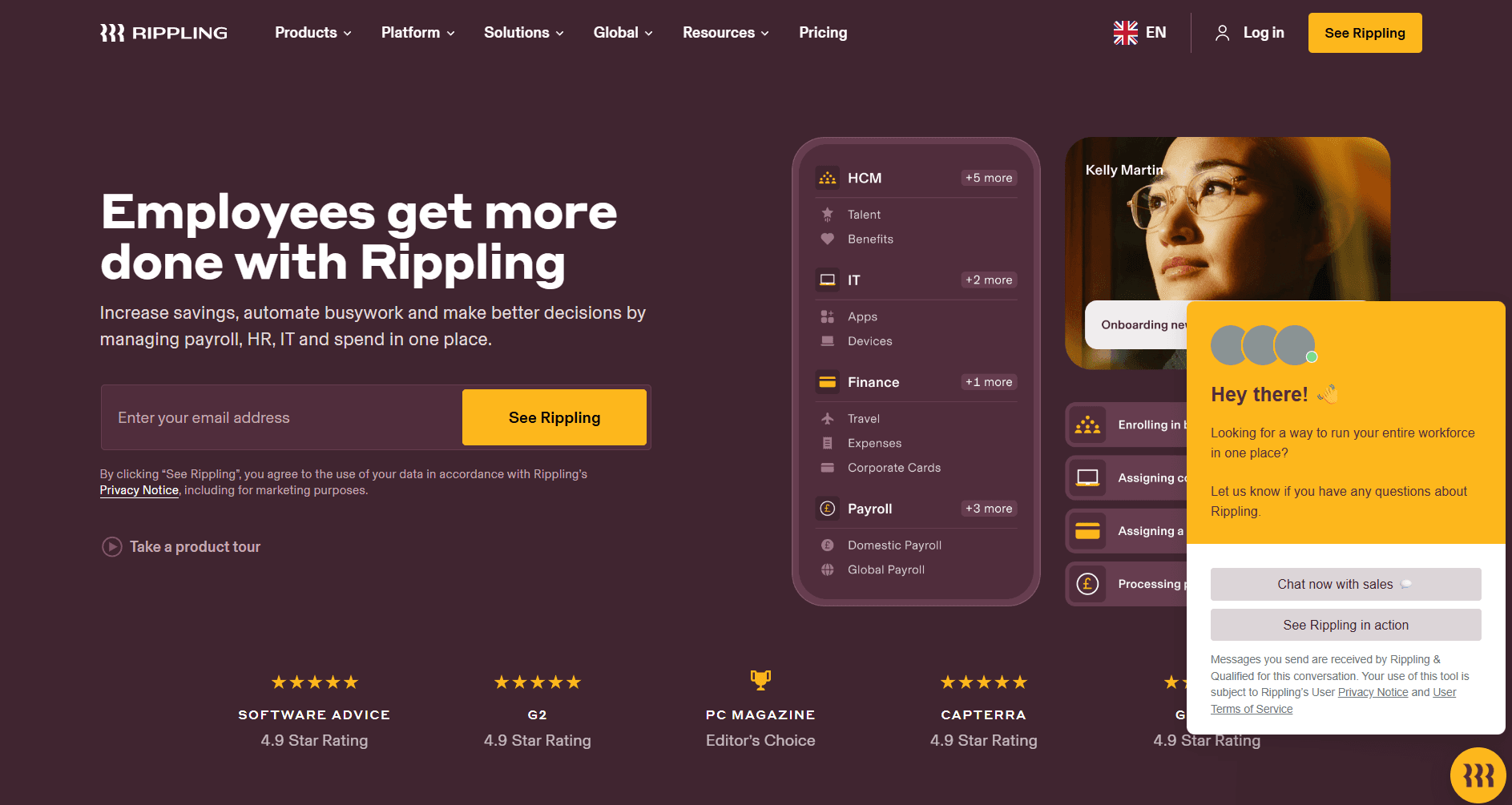 What Makes It Stand Out: Most HR tools do one thing well. Rippling connects everything. When you hire someone, they're automatically added to payroll, enrolled in benefits, provisioned in your apps, and shipped a laptop.