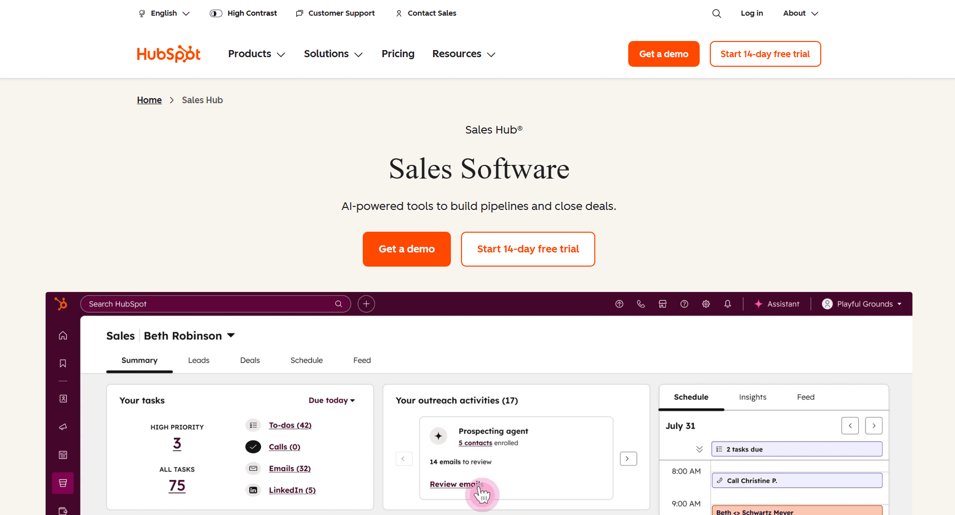 HubSpot Sales Hub | Scalable AI-powered CRM | Free / $45/mo | |