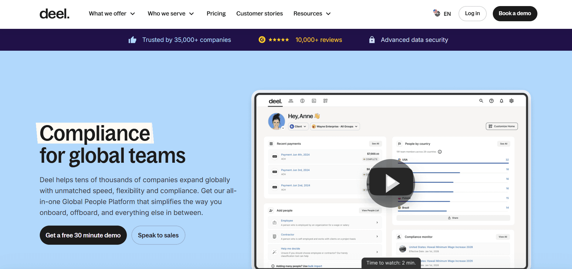 Global Workforce: Support for international employees across payroll, compliance, and benefits